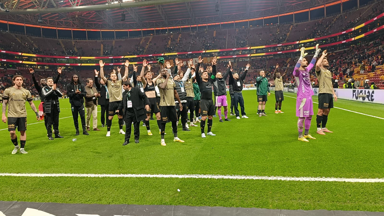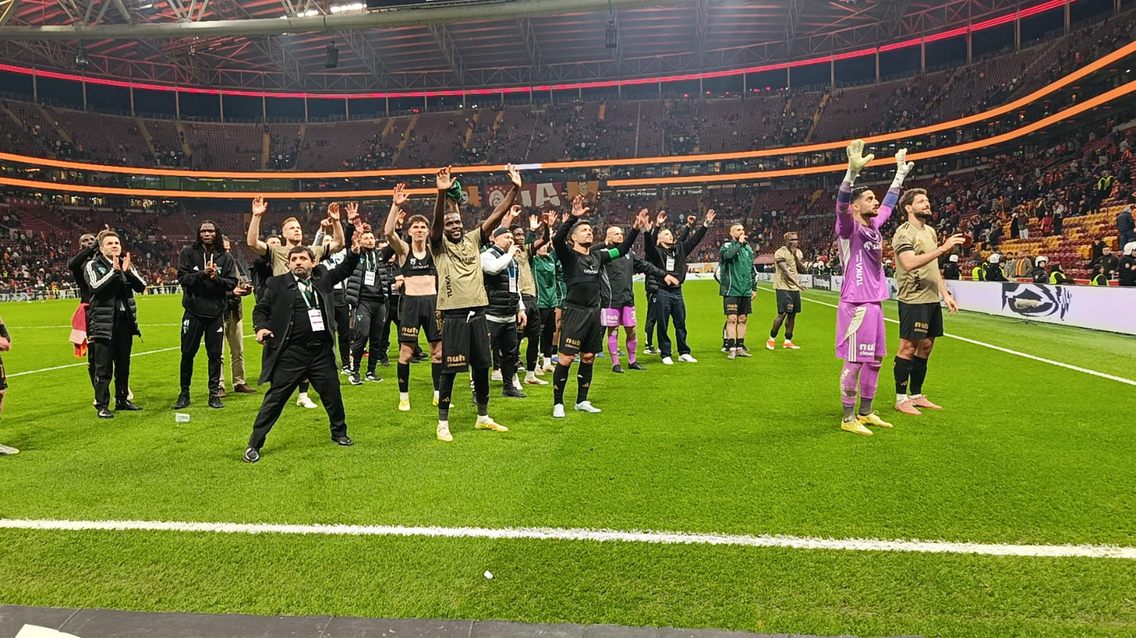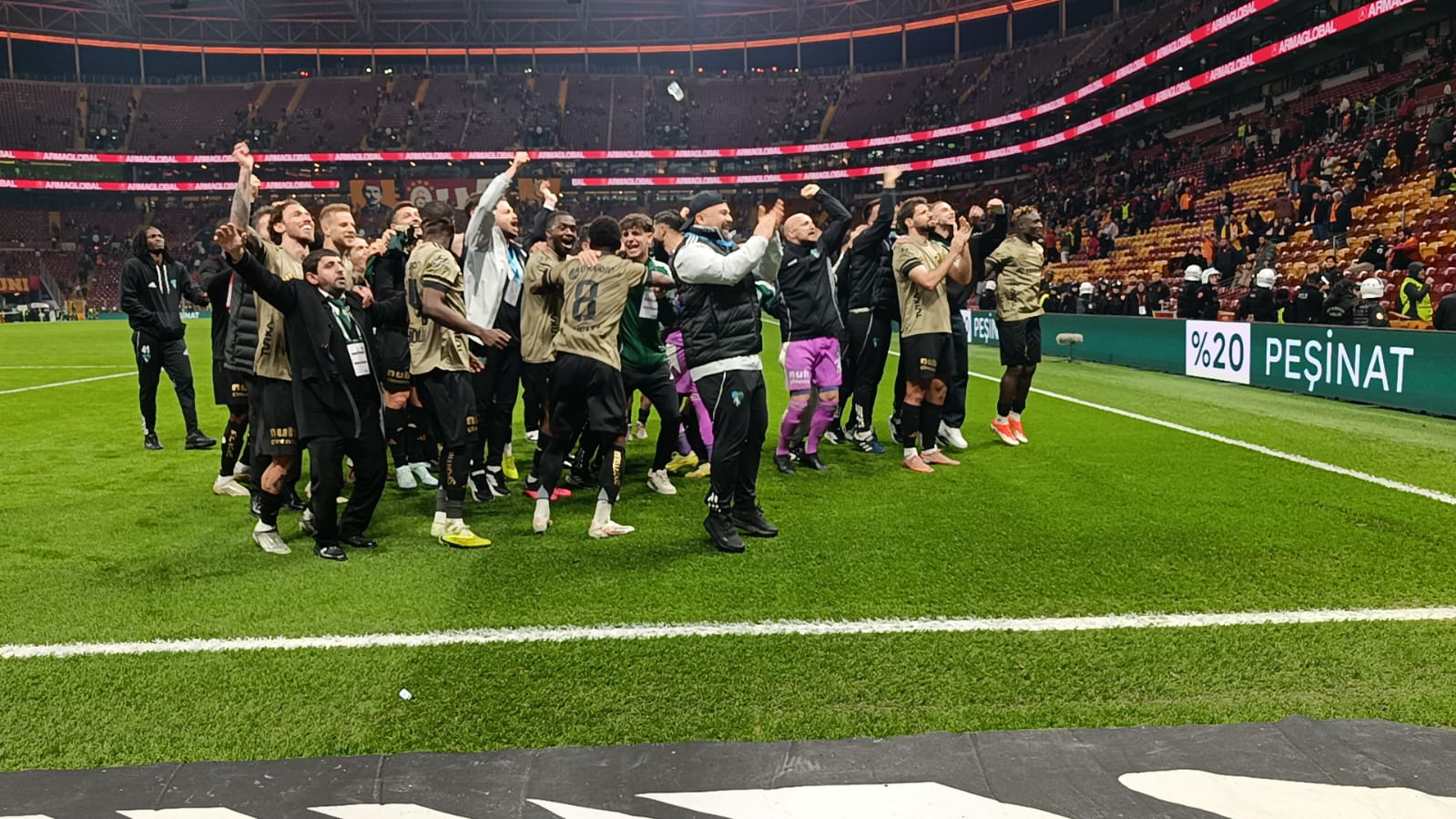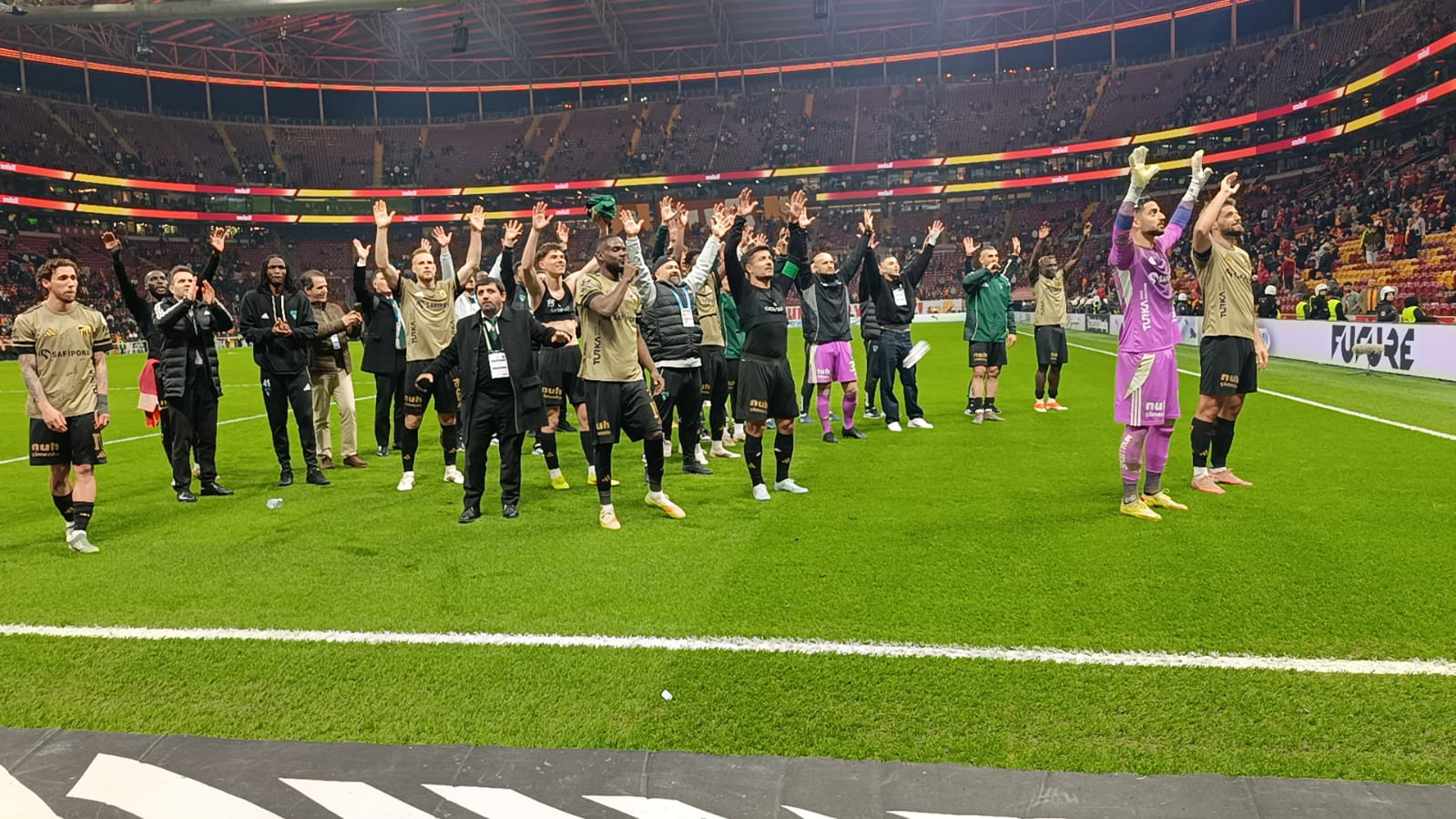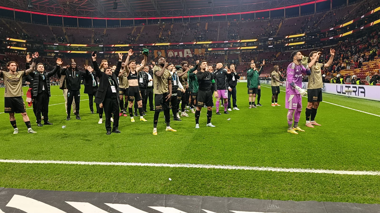 Karşılaşmada tribünde yerini alan Hodri Meydan taraftar grubu, 90 dakika boyunca tezahüratlarla takımlarına destek verdi. Deplasman tribününü tamamen dolduran Kocaelispor taraftarı, yine farkını ortaya koydu.
